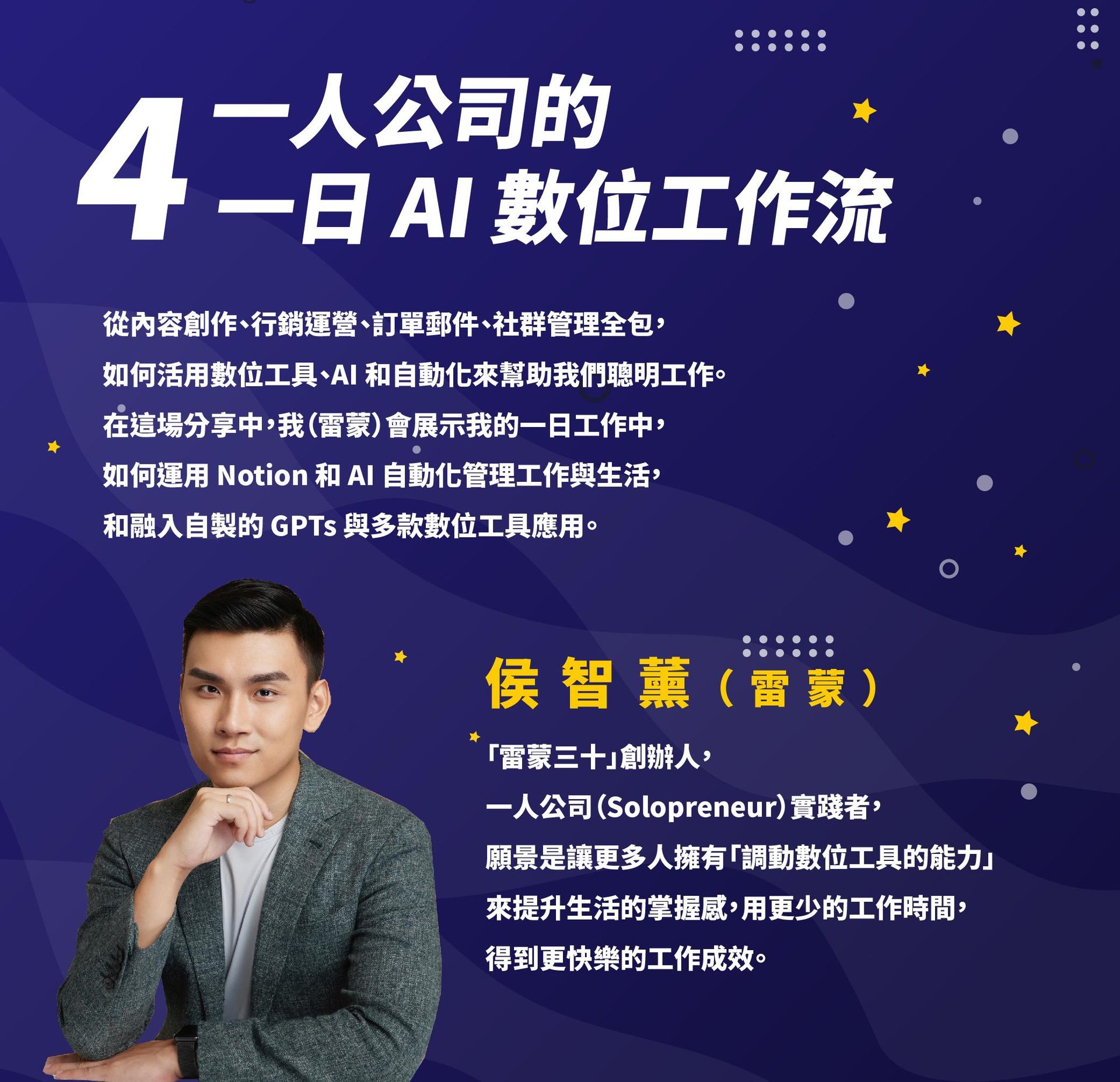 【4+1堂合購】AI 知識煉金術 打造個人化數位工作流:線上講座