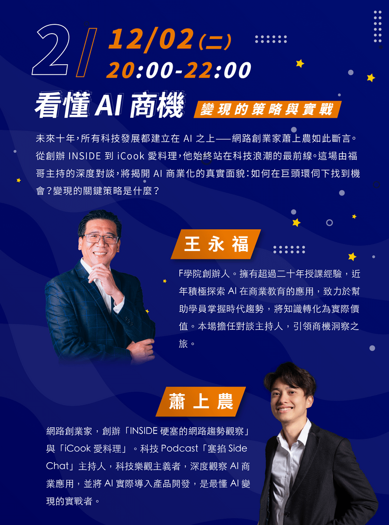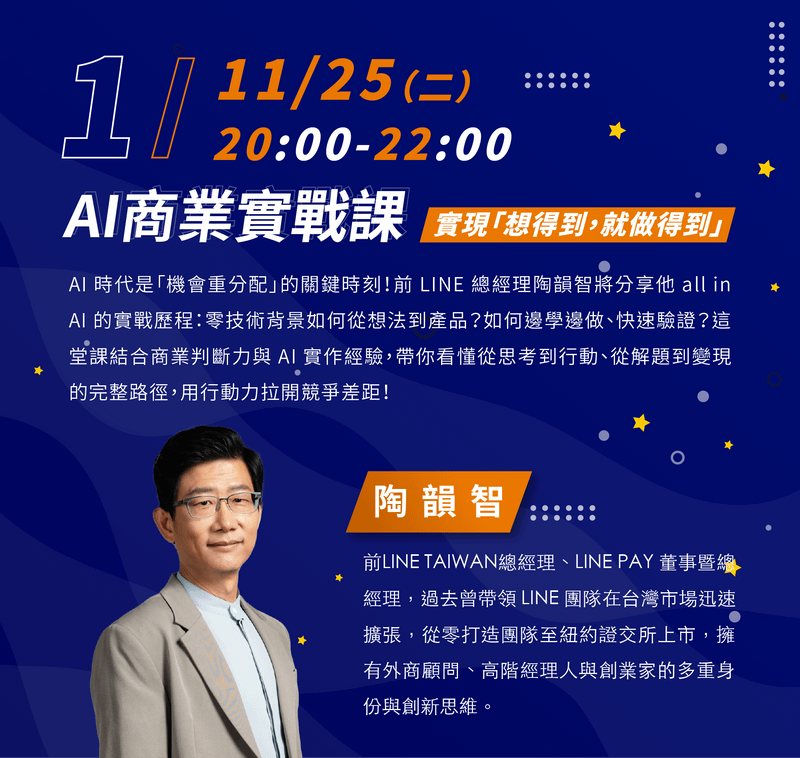【3堂合購】AI 商業煉金術 打造你的 AI 變現模式:線上講座