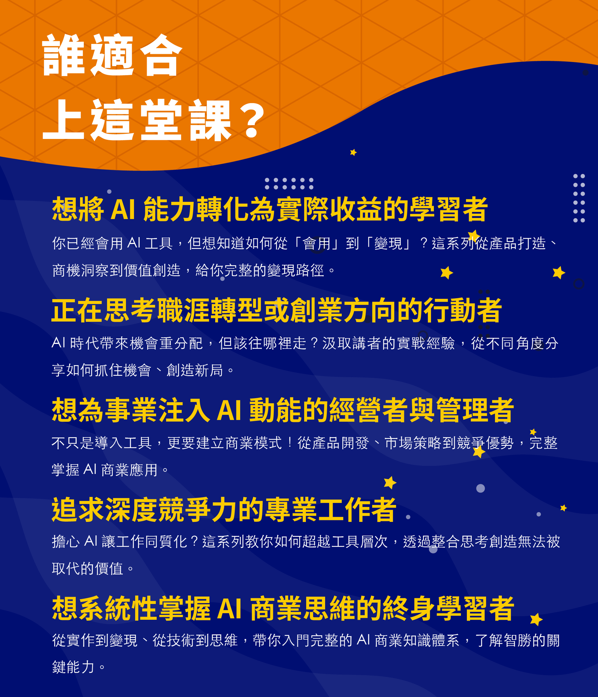 這場由福哥主持的深度對談,將揭開 AI 商業化的真實面貌:如何在巨頭環伺下找到機會?變現的關鍵策略是什麼?