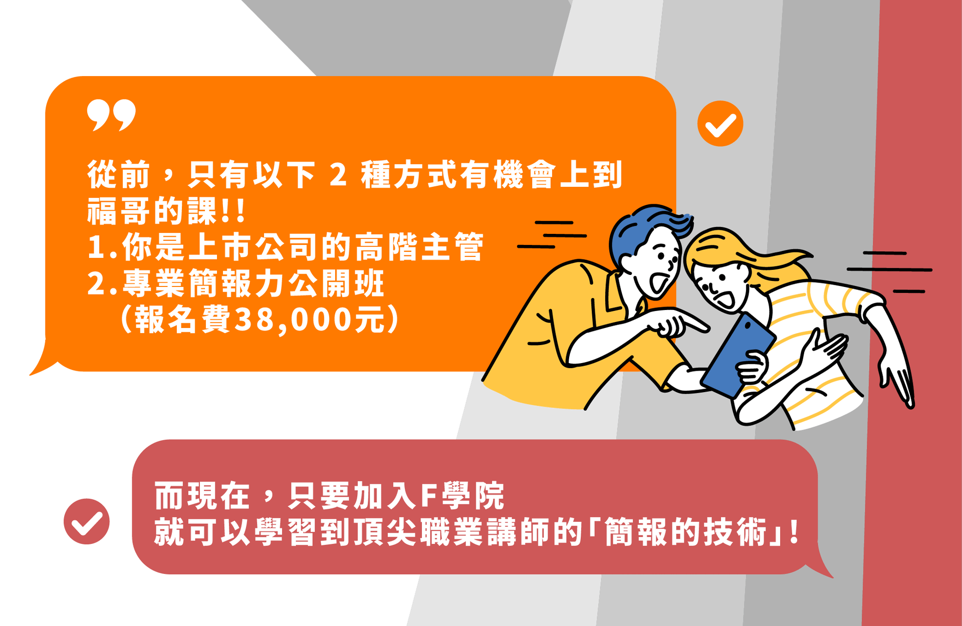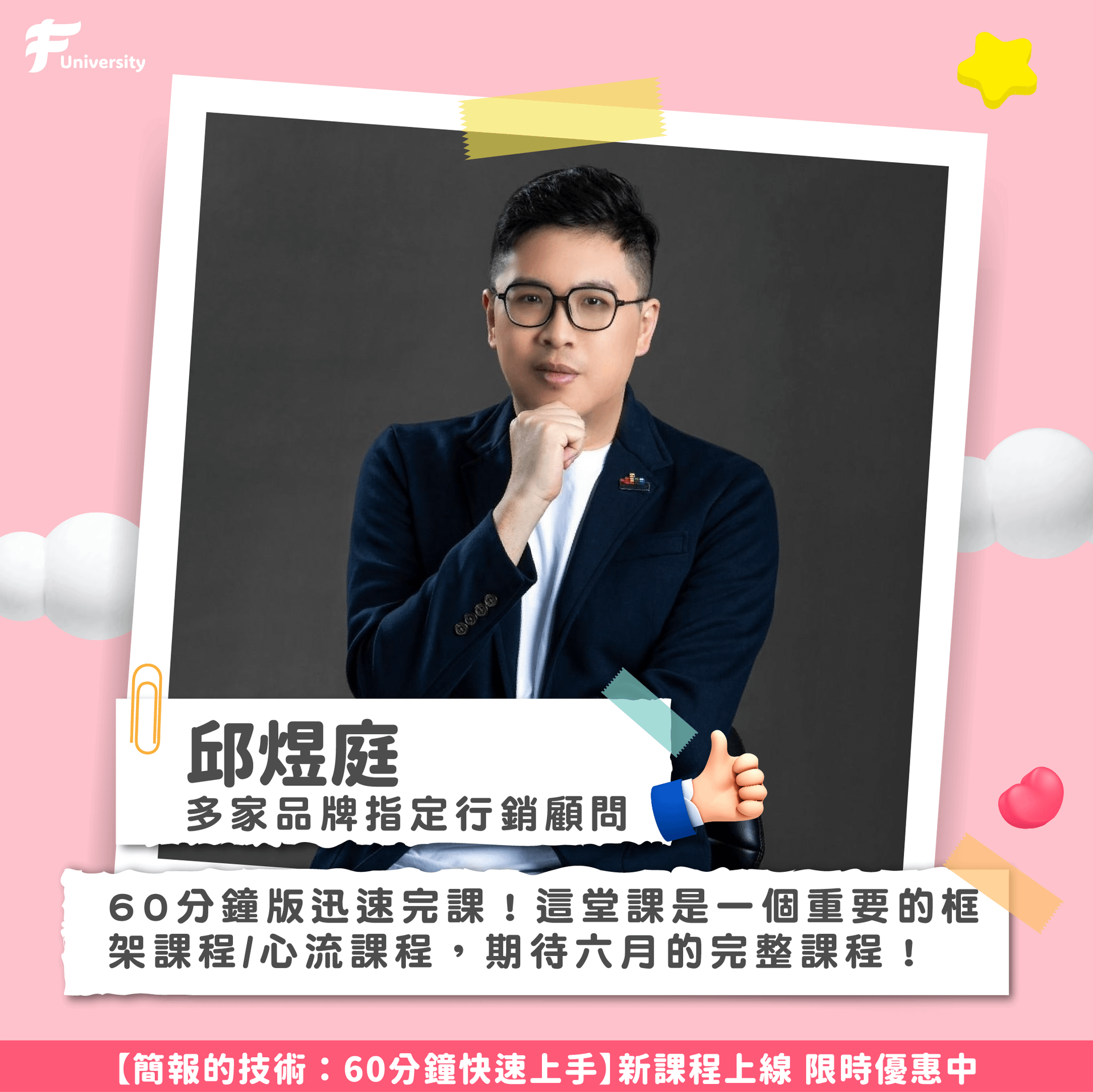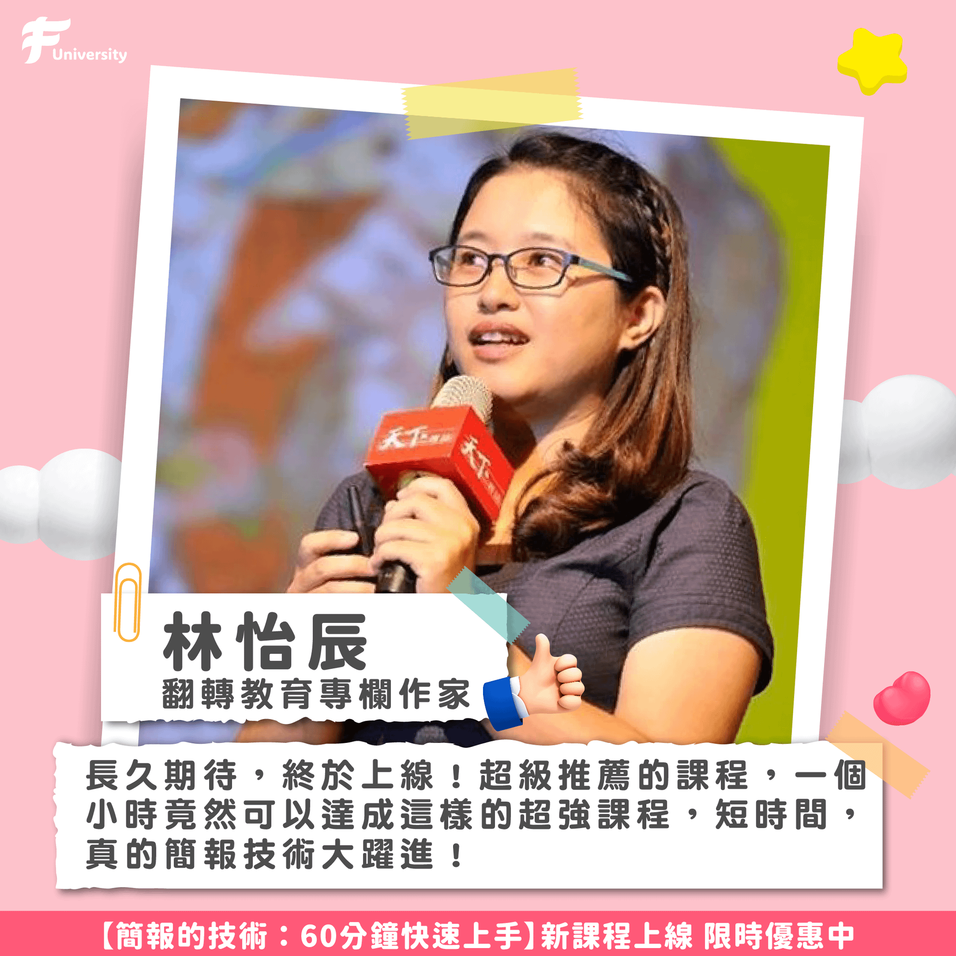 如果上台簡報是總是讓你很緊張,也找不到一個系統化的準備方法。讓最受各大上巿公司(台積電、鴻海、聯發科、Google、IKEA, Nike 等)指定的簡報教練-福哥,用15年的專業簡報經驗,搭配實際上台的真實案例。帶著你一步一步學會簡報前、中、後的不同技巧。克服緊張,超越緊張。進一步贏得掌聲!