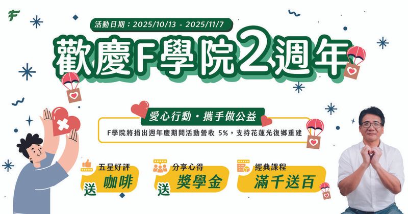 🎊 F學院2週年,邀您一起:
