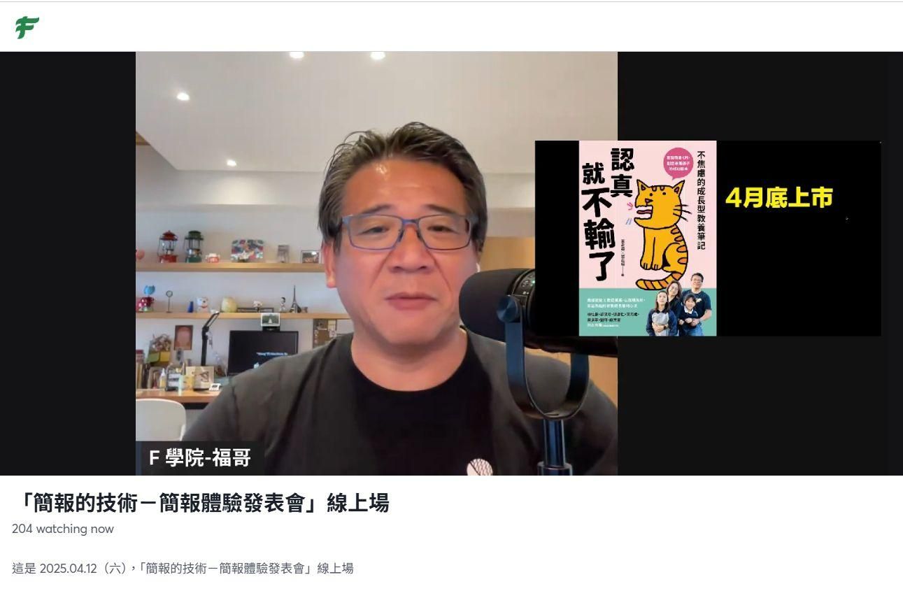 「福哥風風火火的推出了「簡報的技術」線上課,這課程的高規格製作與教學引導技巧都是上乘之作,情境劇演出、嘉賓訪談、簡報過程示範、理論與實務交互引導,實在引人入勝!