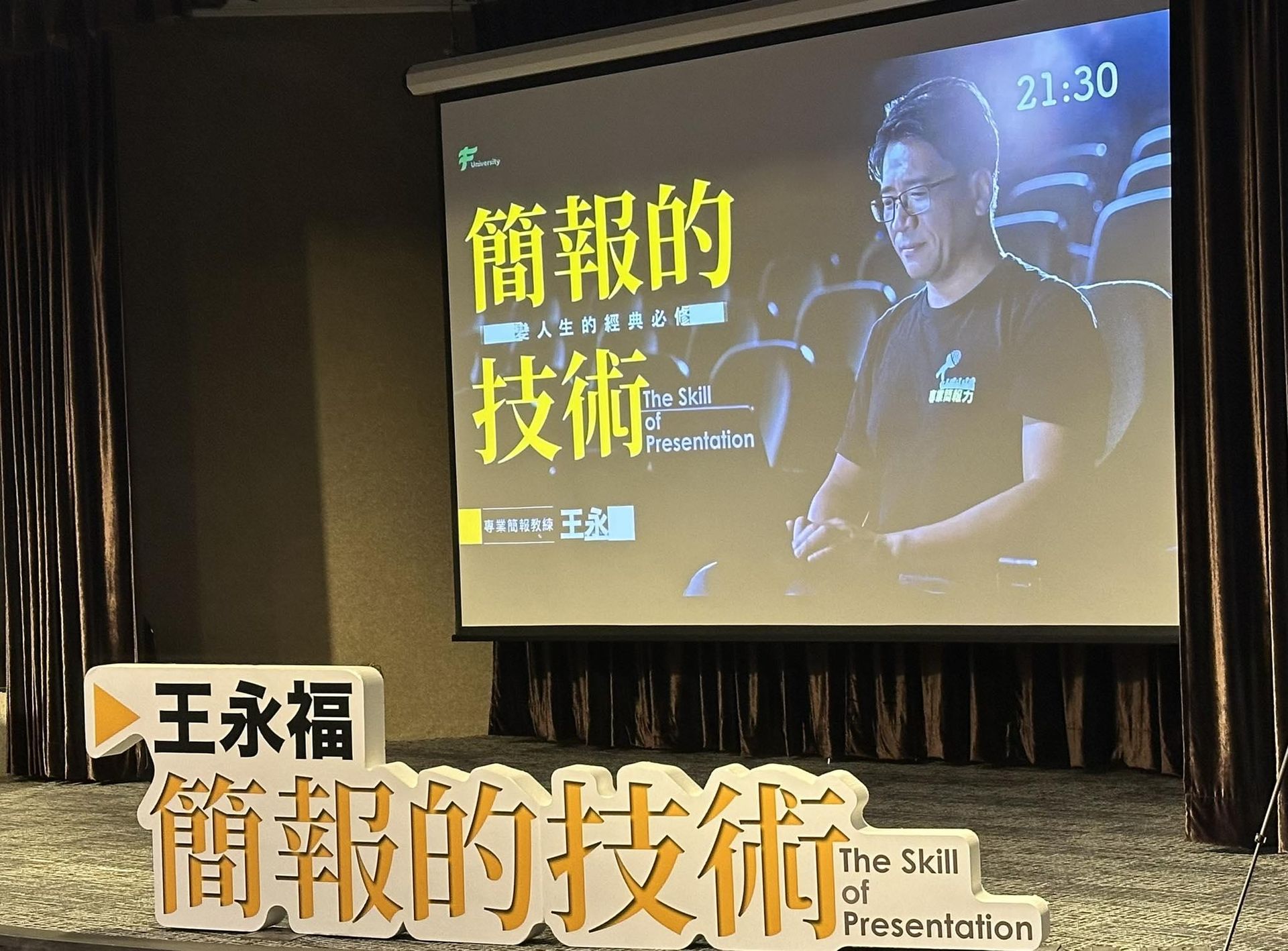 「當簡單的報簡報,進化到四機四鏡,畫分鏡表加上即時回饋、問題反思跟肢體語言等等,整合每一個技術,那就昇華成為一門學問。上台報告很簡單,每個人都做過,基本常識圖片優於文字,影片優於圖片,或者製作小卡,左圖右文,甚至最新的技術可以用AI製作簡報;然而,真正的技術,讓這麼多人追捧,花時間花金錢來學習,甚至出席者眾,沒有青年學子,全部都是上班族,或者是資深幹部等級,甚麼吸引他們學習?甚麼讓他們願意花時間學習?甚麼願意讓他們掏錢加值?甚麼讓他們呼朋引伴一起來?