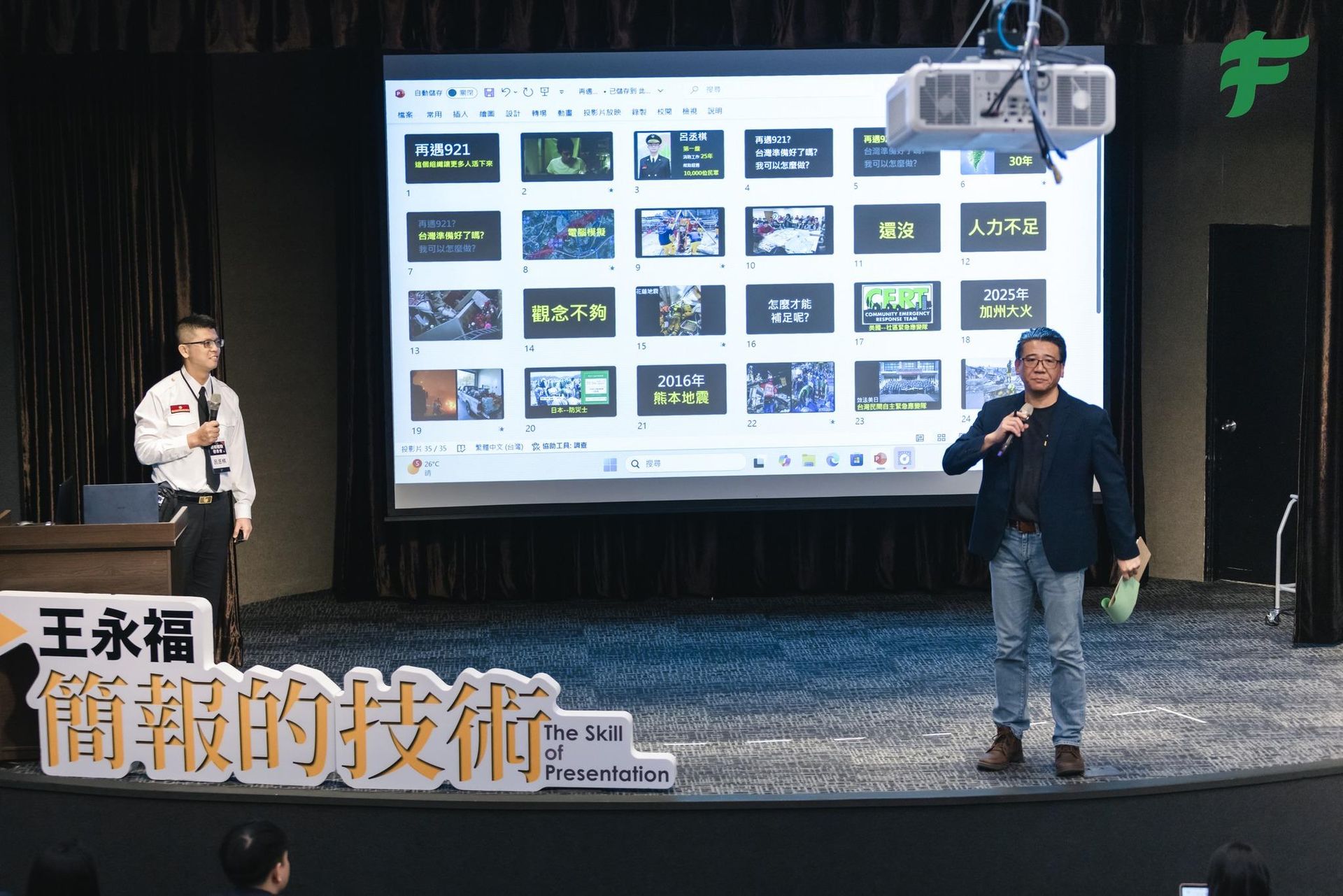 「福哥「簡報的技術」就是我心目中全世界最好的簡報課程,因為有國內最知名的簡報教練王永福(福哥)親自指導,全面拆解簡報過程,就像訓練救護單項技術一樣,一項一項練到熟;也有簡報高手示範九種不同領域的簡報,如同救護情境的演練,行雲流水般的完成每個步驟,把簡報完成。簡報的目的是「說服」,今天台上的夥伴,就是我心目中好簡報的樣子。」—— 呂丞棋(點我閱讀推薦全文)