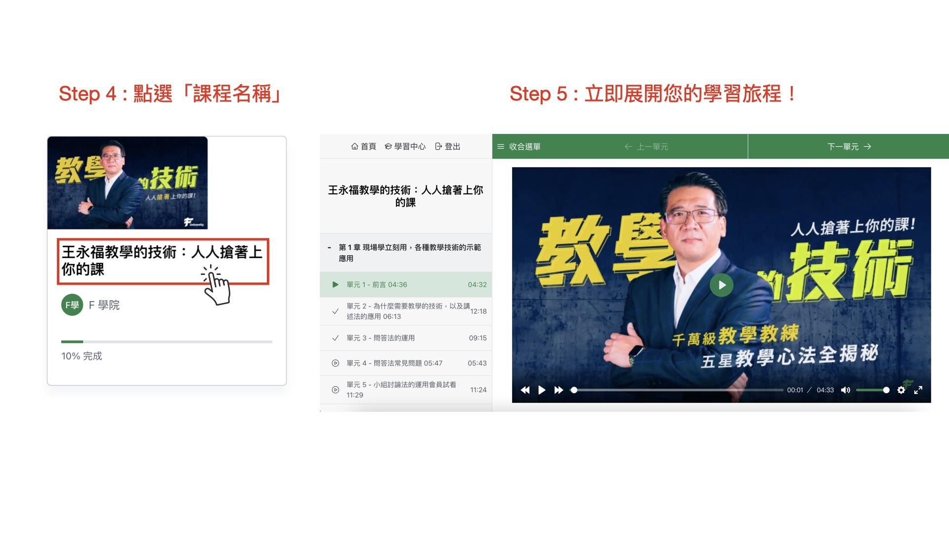 只要您先前有在 Hahow好學校購買「教學的技術」線上課程,即可申請免費開通F學院「教學的技術」線上課程。