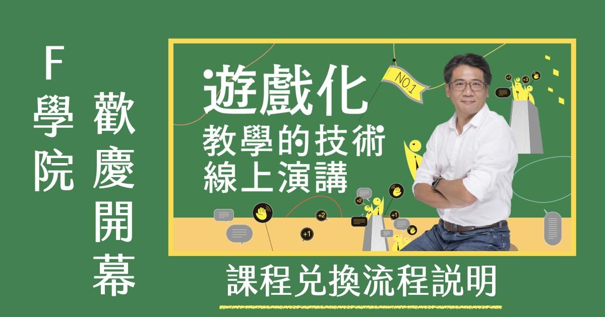 若您是Hahow、海課的「教學的技術」老學員,歡迎您儘快回娘家,申請開通F學院的「教學的技術」課程,即可於第一時間收到「遊戲化教學的技術 線上演講」課程兌換碼囉!
